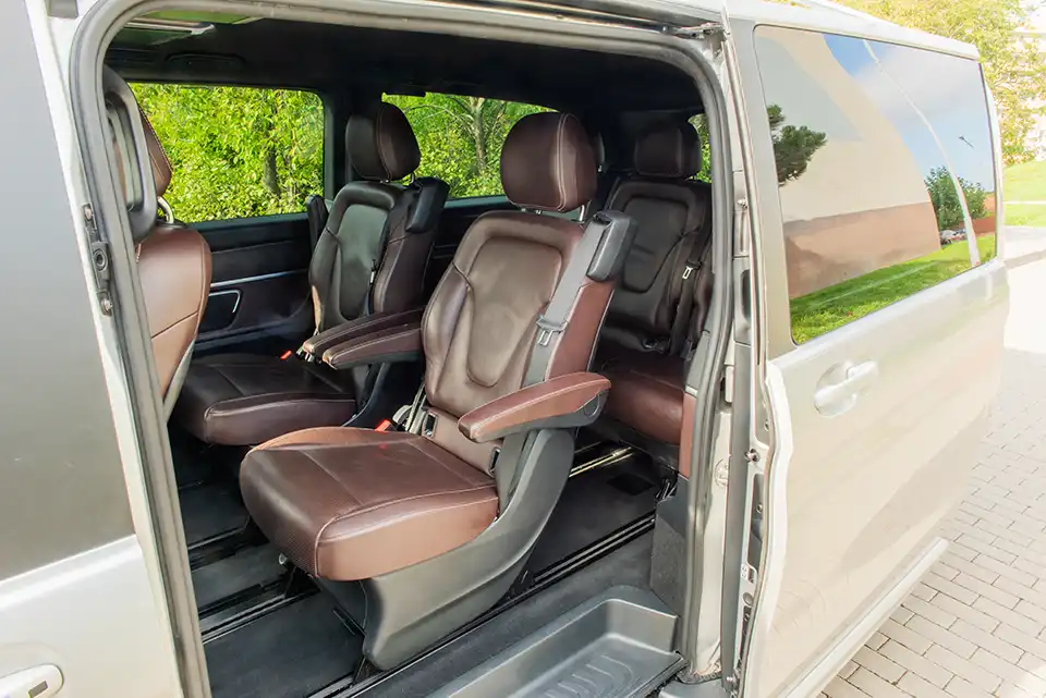 Objednat přepravu osobProhlédněte si fotky vozu Mercedes V class. Ve vždy perfektně připraveném a voňavém interiéru bude pro vás příjemná jakkoli dlouhá cesta. Během cesty můžete využívat wifi, monitory a občerstvení. Příjemné stabilní klima po celou cestu zajistí 3-zónová klimatizace. Chceme, aby byl váš zážitek z jízdy co nejlepší, a proto vám rádi splníme i speciální požadavky, budou-li proveditelné.